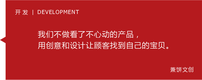 我們不做看了不心動的產(chǎn)品,用創(chuàng)意和設(shè)計讓顧客找到自己的寶貝。兼餅文創(chuàng)